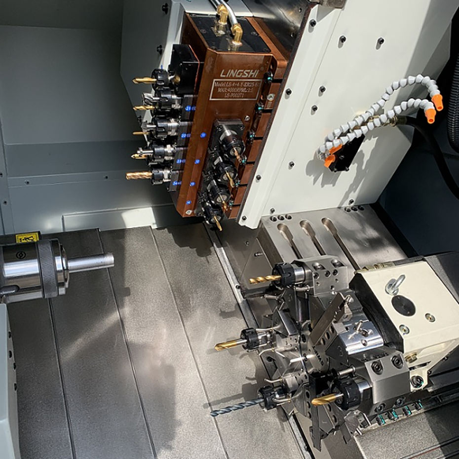 ●刀塔采用伺服马达驱动,可就近换刀,换刀速度快。刀塔锁紧为油压锁定,锁紧力強,刀塔稳定性高,实现刀塔高刚性及高精度特点。
